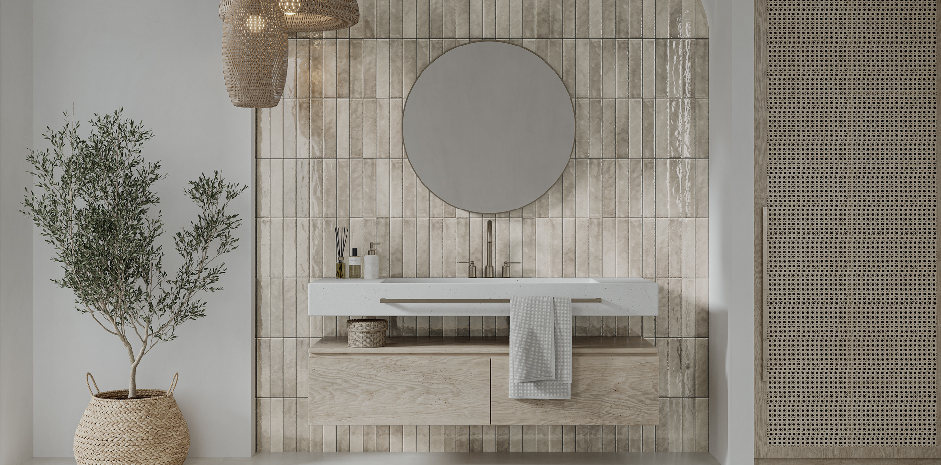 Napjaink divatját csempésszük a fürdőszobába a lamella hatású Rochelle Wood STR. 29,8x74,8 cm méretű falicsempével. A fali burkolat a Tubadzin Rochelle kollekció tagja, mely önállóan nappali, előszobafal dekorációjaként vagy a teljes termékcsalád használatával fürdőszoba komplett burkolataként is megállja helyét.