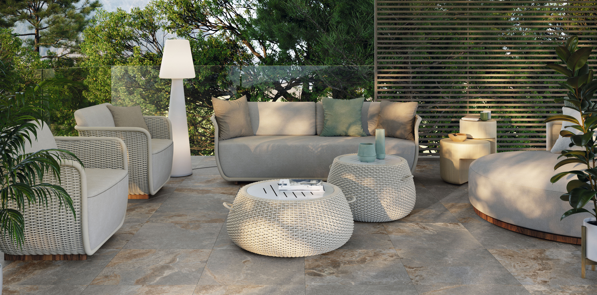 A 3 család 3 különböző felületet mutat be. A Barbados kőhatású, a Linea márvány erezetes, a Terrane pedig a travertin kő mintázatát követi.
