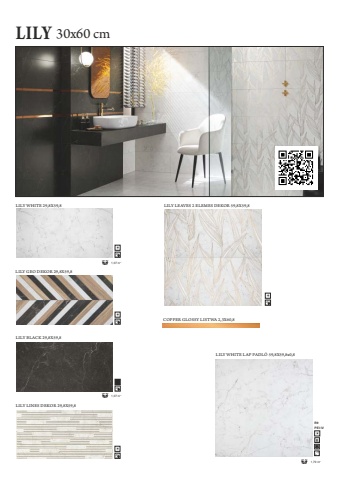 LILY30x60 cmLILY WHITE 29,8X59,821,07 mLILY GEO DEKOR 29,8X59,8LILY BLACK 29,8X59,821,07 mLILY LINES DEKOR 29,8X59,821,79 mPEIIVRR9LILY WHITE LAP PADL%u00d3 59,8X59,8x0,8COPPER GLOSSY LISTWA 2,3X60,8LILY LEAVES 2 ELEMES DEKOR 59,8X59,8