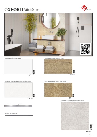 OXFORD30x60 cmBIALA MAT (CCR32) 30X6021,8 mOXFORD WHITE CHEVRON (CCR33) 30X6021,8 mOXFORD CHEVRON (CCR35) 30X6021,8 mOXFORD HONEY (CCR34) 30X6021,8 mLISTWA SUPER INOX 2,5X60LISTWA INOX 1,5X60UNIVERSAL SOFT GREY PADL%u00d3 60X60PEIV21,8 m111