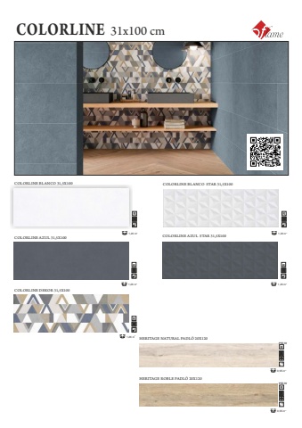 COLORLINE31x100 cmCOLORLINE BLANCO 31,5X100COLORLINE AZUL 31,5X100COLORLINE BLANCO STAR 31,5X10021,26 mCOLORLINE DEKOR 31,5X100COLORLINE AZUL STAR 31,5X10021,26 mRR20,95 mPEIIVHERITAGE ROBLE PADL%u00d3 20X12020,95 mHERITAGE NATU L PADL%u00d3 20X12021,26 m21,26 mRR21,26 mRRPEIIVR