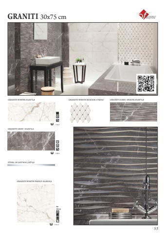 G NITI30x75 cmGRANITI WHITE 29,8X74,821,34 mRGRANITI GREY 29,8X74,821,34 mRGRANITI WHITE MOZAIK 27X29,8GRANITI GREY DEKOR 29,8X74,8STEEL 18 LISTWA 2,3X74,8GRANITI WHITE PADL%u00d3 59,8X59,821,79 mPEIVRR953