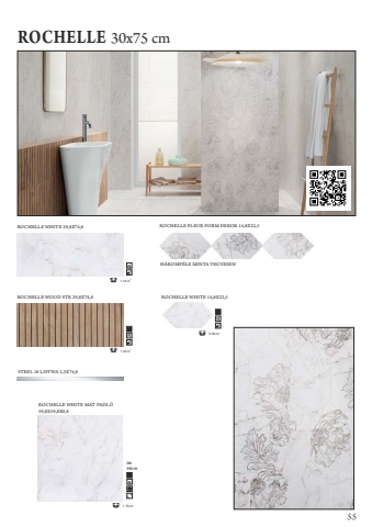 ROCHELLE30x75 cmROCHELLE WHITE 29,8X74,821,34 mRROCHELLE WOOD STR 29,8X74,821,34 mRSTEEL 18 LISTWA 2,3X74,8ROCHELLE WHITE MAT PADL%u00d3 59,8X59,8X0,821,79 mRROCHELLE WHITE 14,8X22,520,56 mRROCHELLE FLEUR FORM DEKOR 14,8X22,5PEIVR9H%u00c1ROMF%u00c9LE MINTA VEGYESEN55