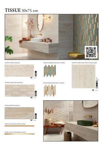 TISSUE30x75 cmTISSUE IVORY 29,8X74,821,34 mRTISSUE IVORY STR 29,8X74,821,34 mRTISSUE BEIGE 29,8X74,821,34 mRTISSUE GREEN MOZAIK 27,2X29,8TISSUE IVORY MAT PADL%u00d3 59,8X59,8X821,79 mRPEIVR9TISSUE BEIGE MOZAIK 27,2X29,8TISSUE GOLD FALICS%u00cdK 2,3X74,8STEEL GOLD 4 FALICS%u00cdK 1,5X74,8