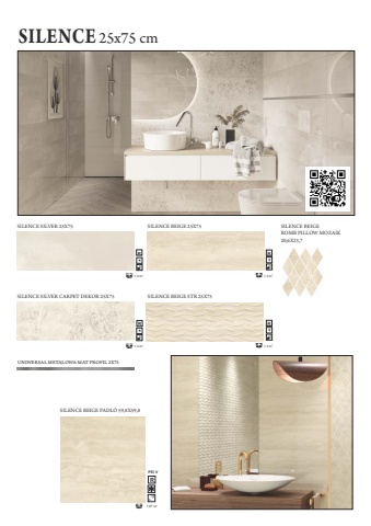 SILENCE25x75 cmSILENCE SILVER 25X7521,3 mSILENCE BEIGE 25X7521,3 mSILENCE SILVER CARPET DEKOR 25X7521,3 mSILENCE BEIGE STR 25X7521,3 mSILENCE BEIGE ROMB PILLOW MOZAIK20,6X23,7SILENCE BEIGE PADL%u00d3 59,8X59,8PEI V21,07 mRRRUNIWERSAL METALOWA MAT PROFIL 2X75RR