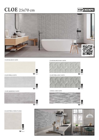 CLOE25x70 cmCLOE BLANCO 25X7021,58 mCLOE PERLA 25X7021,58 mCLOE MARENGO 25X7021,58 mLINEAL GRIS 25X7021,58 mCLOE BLANCO RLV. 25X7021,58 mCLOE PERLA RLV. 25X7021,58 mLILAH PERLA PADL%u00d3 45X4521,42 m