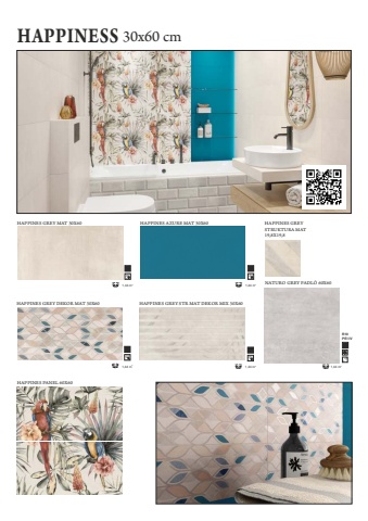 HAPPINESS30x60 cmHAPPINES GREY MAT 30X6021,44 mHAPPINES AZURE MAT 30X6021,44 mHAPPINES GREY DEKOR MAT 30X6021,44 mHAPPINES GREY STR MAT DEKOR MIX 30X6021,44 mHAPPINES PANEL 60X60HAPPINES GREY STRUKTU MAT 19,8X19,8PEIVNATURO GREY PADL%u00d3 60X6021,44 mR10